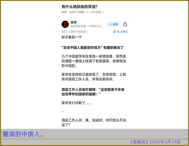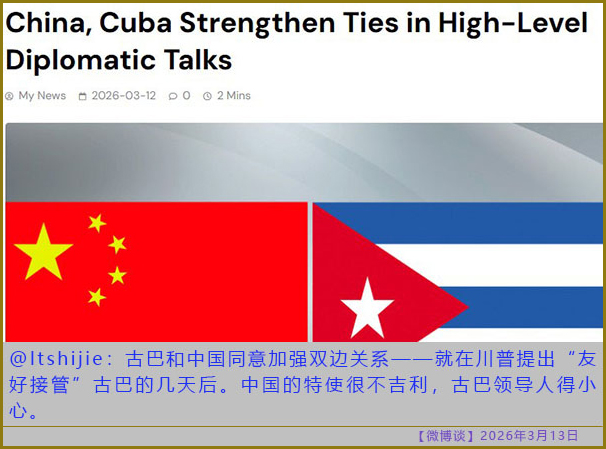 [微博谈 2026/03/13] 中国的特使很不吉利